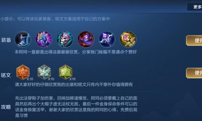 10.合理购买补给品与饰品:购买补给品和饰品可以帮助干将莫邪提升经济收益和生存能力。通过购买补给品,我们可以更快地积累金钱,购买核心装备;饰品则可以提供额外的属性加成,帮助干将莫邪更好地适应游戏局势。