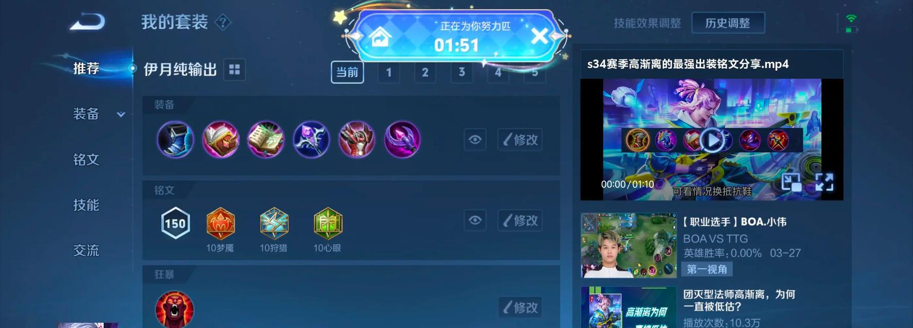 3.选择攻速铭文,并搭配纯净苍穹装备,可以提升高渐离的技能释放速度和持续输出能力;