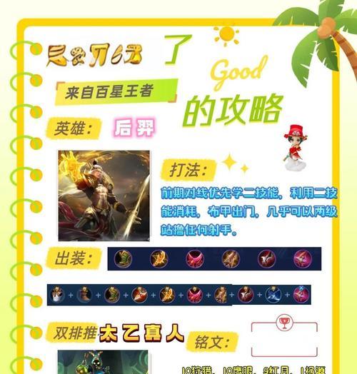 在《王者荣耀》中,羿是一位强大的射手英雄,而与小明的搭配更是无敌组合。本文将为大家介绍羿铭文配小明的攻略,帮助玩家们在战场上更好地发挥羿的优势。
